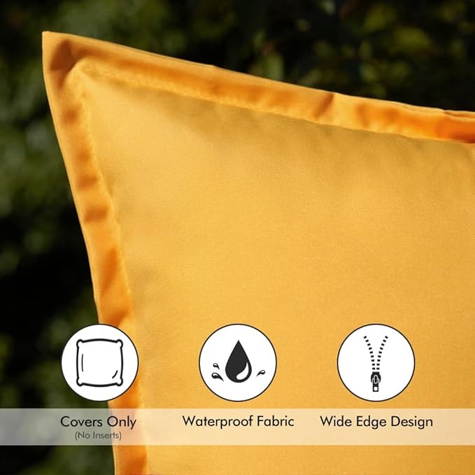 EMEMA Pack of 2 Yellow Outdoor Pillows Waterproof 18x18 Inch Decorative Solid Broadside Square Throw Pillow Covers Outside Pillowcase for Patio Furniture Sunbrella Outdoor Pillows for Balcony Decor