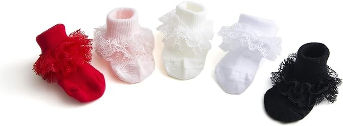 EPEIUS Baby-Girls Eyelet Turn Cuff Ruffle Lace Socks Triple Lace Dressy Socks Newborn/Infants/Toddlers 3/5 Pairs