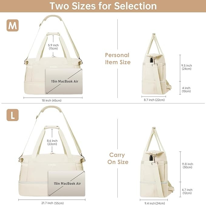 ✅【Dry Wet Separate Duffel Bag】:This duffle bag for women delivers roomy main compartment to store your clothes and items. A zippered waterproof PVC lined pocket for wet clothes or towels and swimsuits. In addition, this travel duffel bag also gives an extra small makeup bag for easy storage.