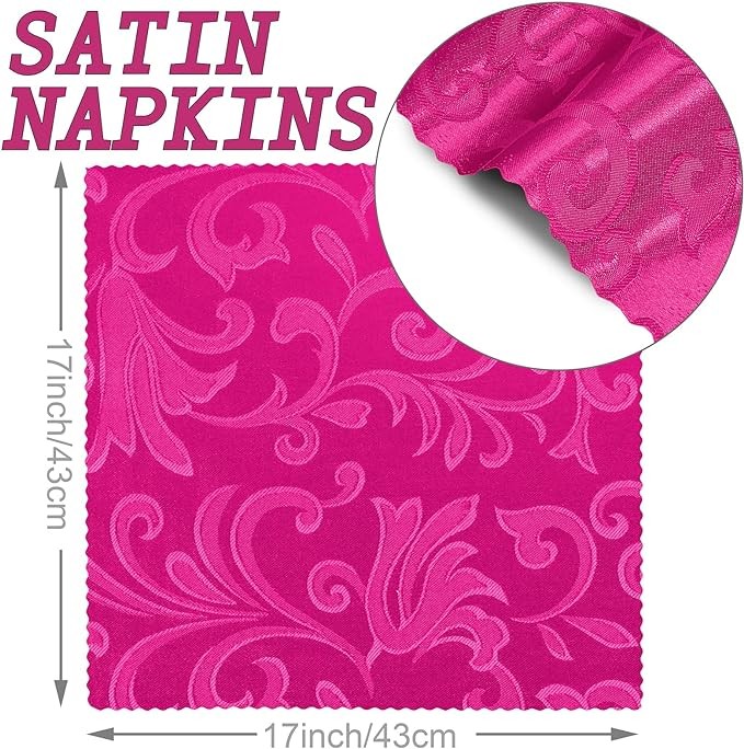 Eychei 24 Pack Hot Pink Satin Napkins 17 x 17 Inch Damask Napkins, Silky Soft Jacquard Cloth Napkin Set of 24, Square Table Napkins Fabric Dinner Napkins for Wedding Banquet Party Decoration