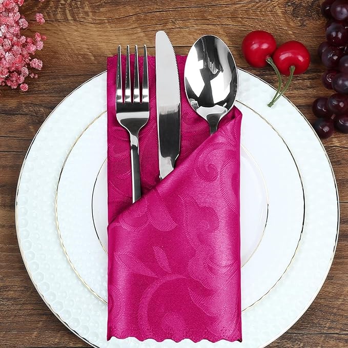 • What you can get: You will receive 24 pack well-designed 17x17 inch (43 cm x 43 cm) jacquard satin napkins. A sufficient number of elegant damask cloth napkins can help you entertain a large number of guests, perfectly meeting your dining needs and the needs of various formal occasions.