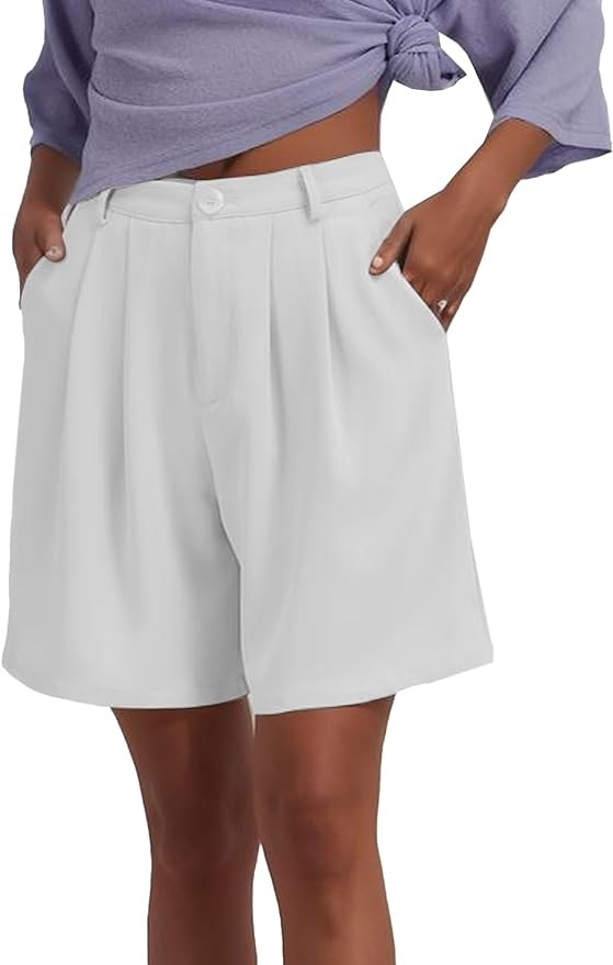 Famulily Womens Pleated Bermuda Shorts for Summer Casual High Waisted Wide Leg Shorts with Pockets