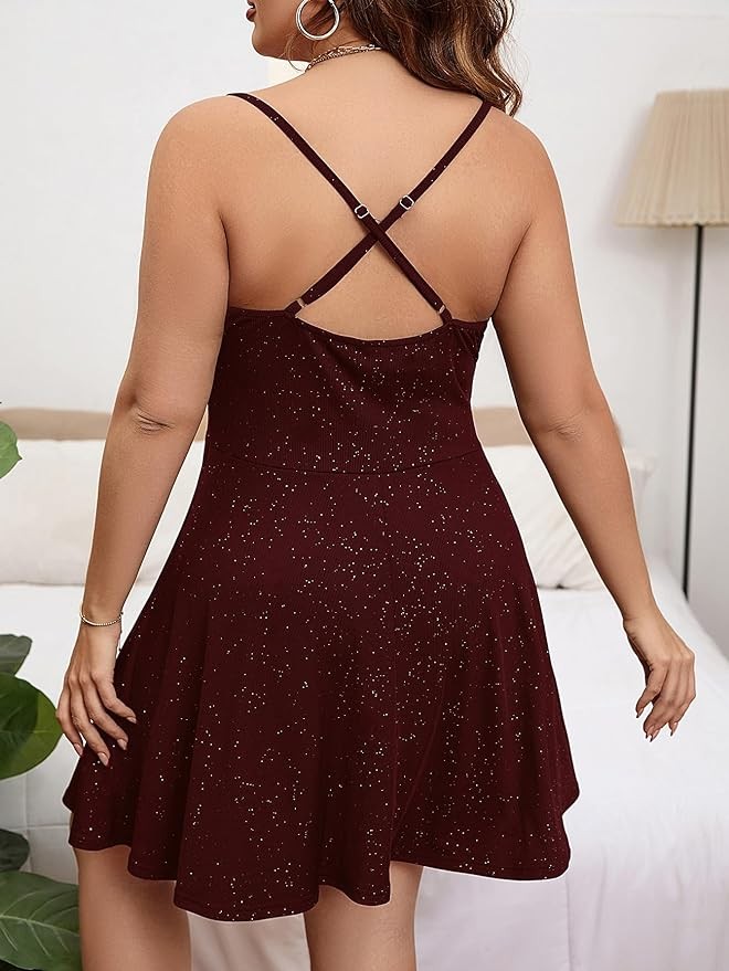 Floerns Women's Plus Size Sleeveless Glitter Dress Wrap V Neck Flared Short Dress