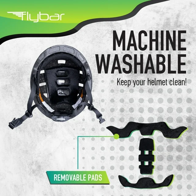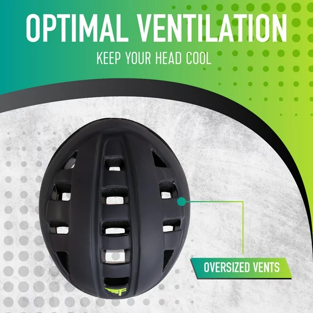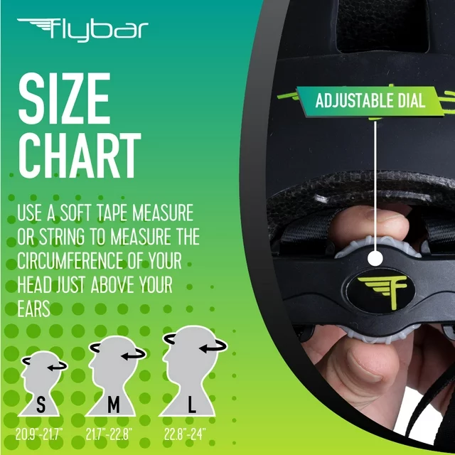 Flybar Junior Multi-Sport Adjustable Helmet, Biking and Skateboarding, Boys and Girls, Ages 3 to 14, Large, Black. Flybar's kids' sport helmets! Designed for both boys and girls who love to stay active and have fun, our helmets are perfect for ages 3-14 years. Our helmets come in a variety of bright and exciting colors, so your child can choose their favorite and stand out. We have options for every style. Our helmets are crafted with safety as our top priority. Each one is made with high-quality materials and designed to provide maximum protection for your child's head during all kinds of active play. So whether your child is riding their bike, skating at the park, or playing a game of pick-up basketball with friends, you can rest assured that they are safe and protected with one of our sport helmets.