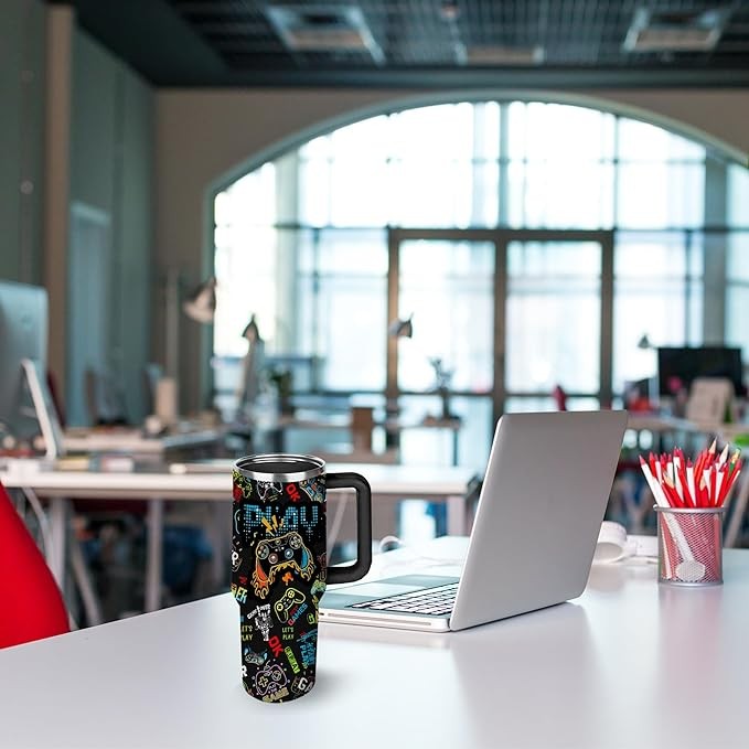 • ?【Versatile and Functional Design】This tumbler is designed with gamers in mind, featuring a versatile design that can be used for both hot and cold beverages. Whether it's a morning coffee or an energizing cold drink, this tumbler has got you covered.
