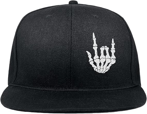 Gaming Hats Snapback Hats for Men Flat Bill Black Custom Snap Backpack Hat for Men Baseball Cap Flat Brim Cool Mens Snapback Hats Skeleton Skull Finger Fitted Gorras para Hombres Originales