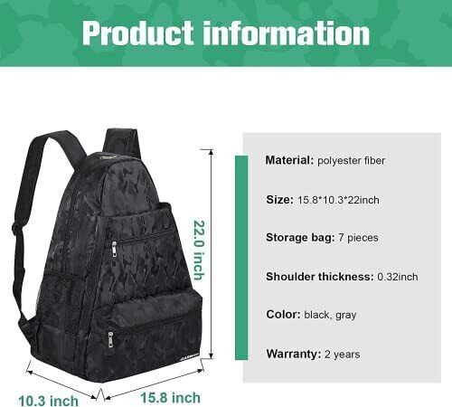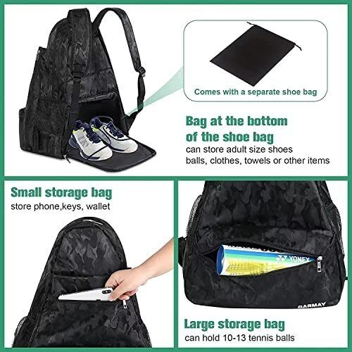 GARMAY Extra Large Tennis Bag Tennis Backpack with Shoe Compartment Waterproof