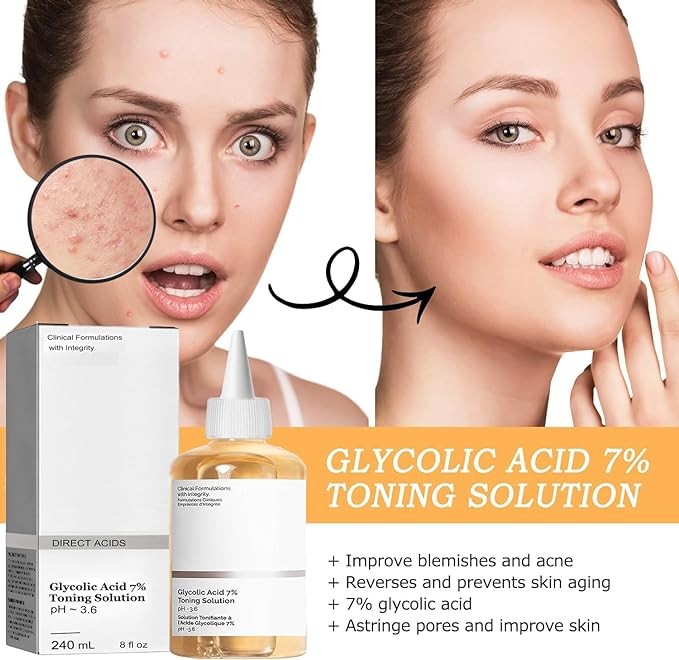 Generic 2pcs X 240ML 8fl.oz Glycolic Acid 7% Toning Resurfacing Solution,Exfoliate,and Rejuvenate Your Skin, Hydrate,Solution for Blemishes and Acne