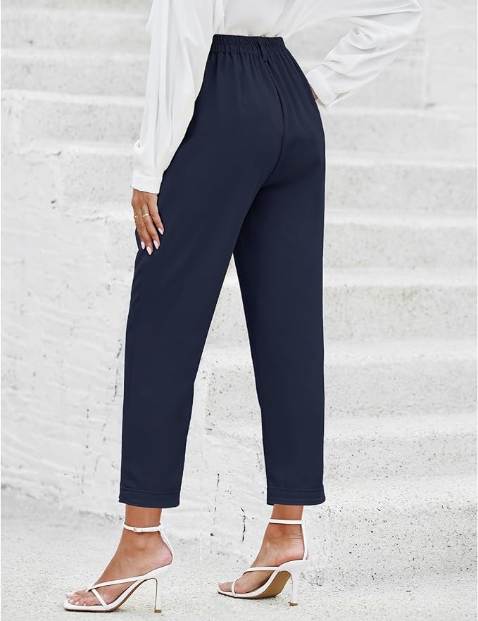 • Cropped pants inseam: 25.6''. The pleats in the front and sewn-in cuffed hem create a subtle visual interest and enhance the overall aesthetic, making these womens trousers suitable for more formal occasions.