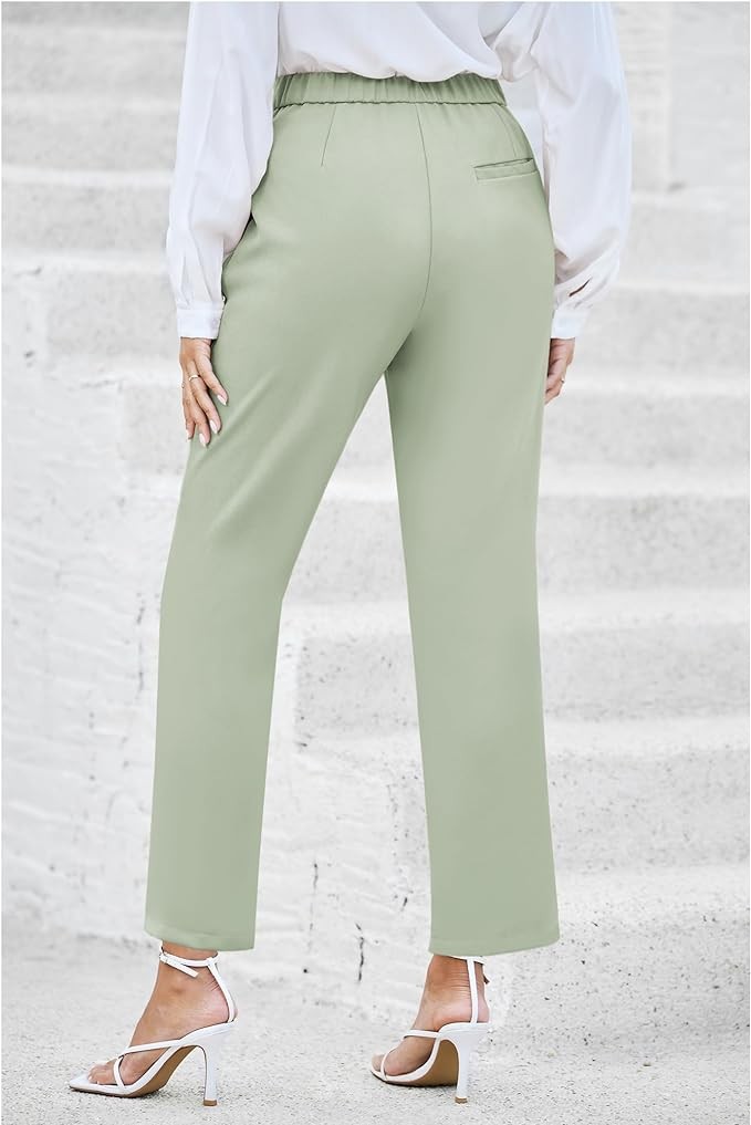 GRAPENT Dress Pants Women High Waisted Work Pants Dressy Casual Straight Leg Elastic Waist Cropped Trousers Ankle Slacks