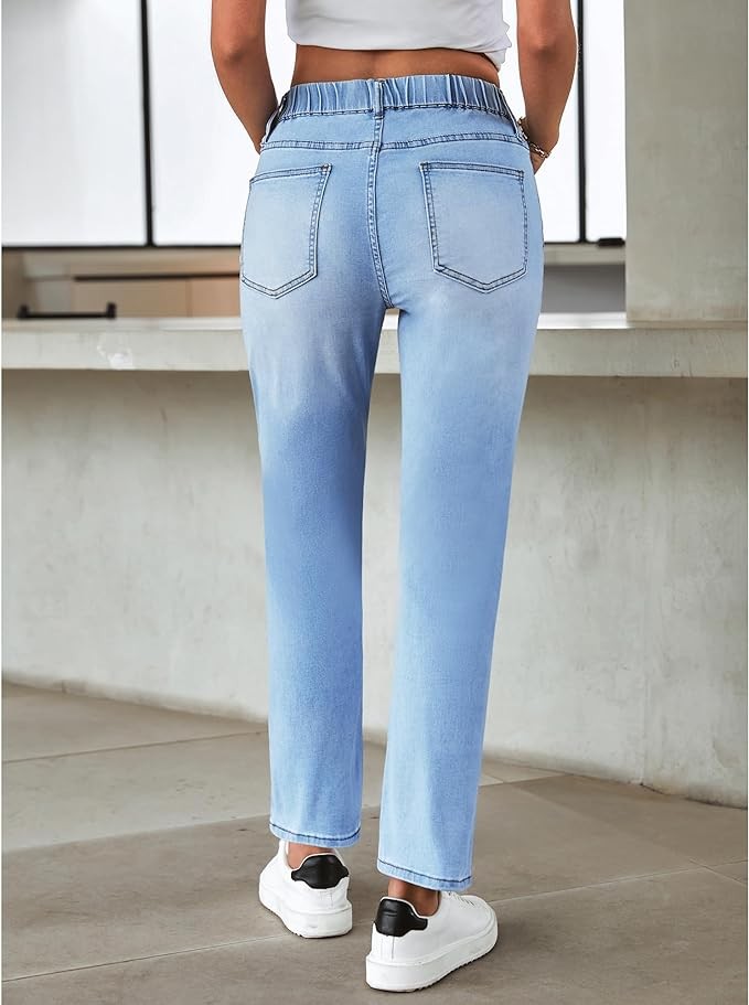 • These women high waisted jeans are easy to slip into with a convenient pull-on style without the hassle of zippers or buttons, offering a smooth and streamlined appearance.