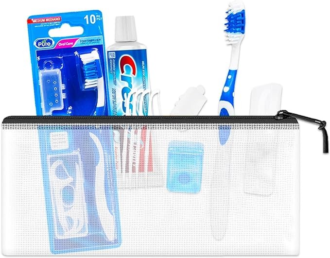 • Oral Care Travel Kit for Adults - Bundle with Travel Toothbrush, Floss, Floss Picks, Anti-Cavity Toothpaste, and More for Men and Women | TSA Friendly Toothbrush Set.