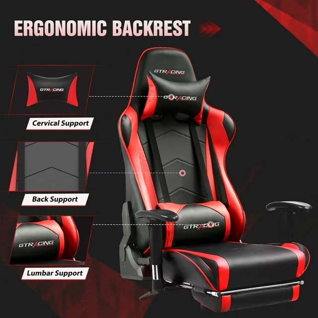 GTRACING gaming chair is your ideal choice for working, studying, and gaming. The GTRACING 099 series with ergonomic design is one of the classical series among our products. With an adjustable headrest and lumbar pillow, it comforts both the cervical and lumbar spine. The racing-style angle adjustor helps you enjoy reclining and rocking at the same time. Seat cushion and chair back full of high-density sponge keep you comfortable after day-long sitting. The ergonomic design and high-quality material make GTRACING chairs perfect for both home and modern offices. Upgrade your gaming office set-up with GTRACING.
