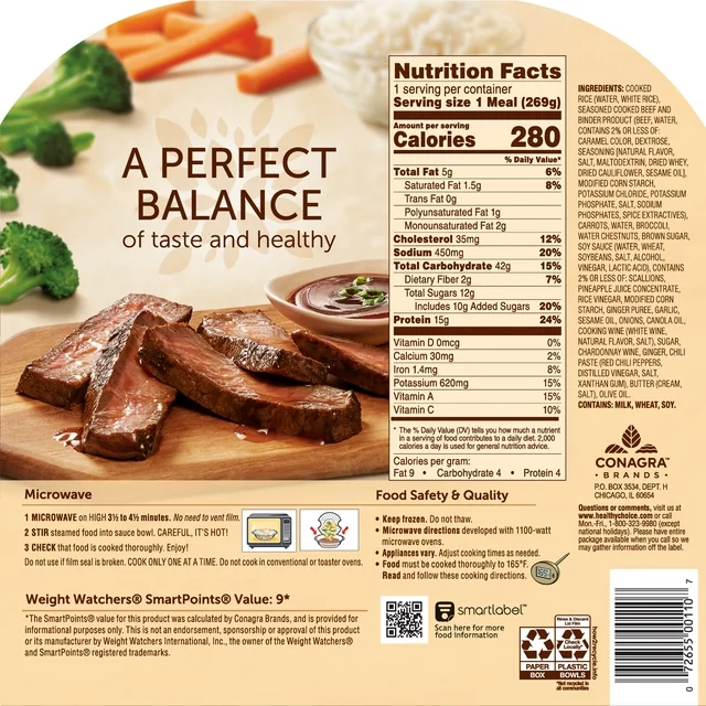 • One 9.5 oz. package of Healthy Choice Café Steamers Beef Teriyaki Frozen Meal