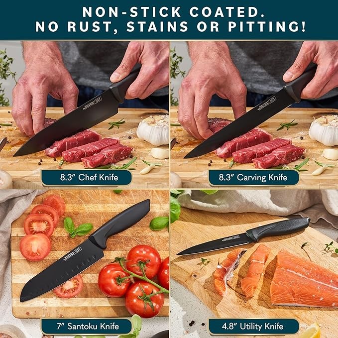 Home Hero Kitchen Knife Set with Sharpener - High Carbon Stainless Steel Knife Block Set with Ergonomic Handles (20 Pcs - Black)