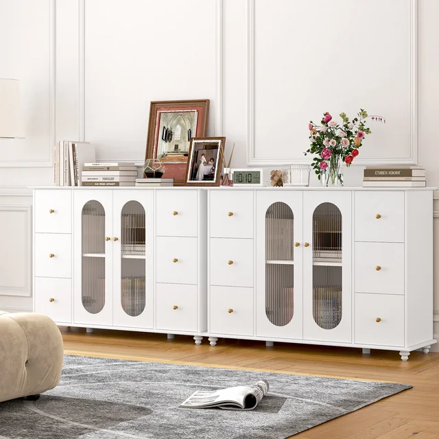 • 【Modern White Style & Elegant Fluted Glass】Special glass not only makes this sideboard cabinet elegant and exquisite, but also can privacy protected. Modern white cabinet style will matches well with various decoration styles.