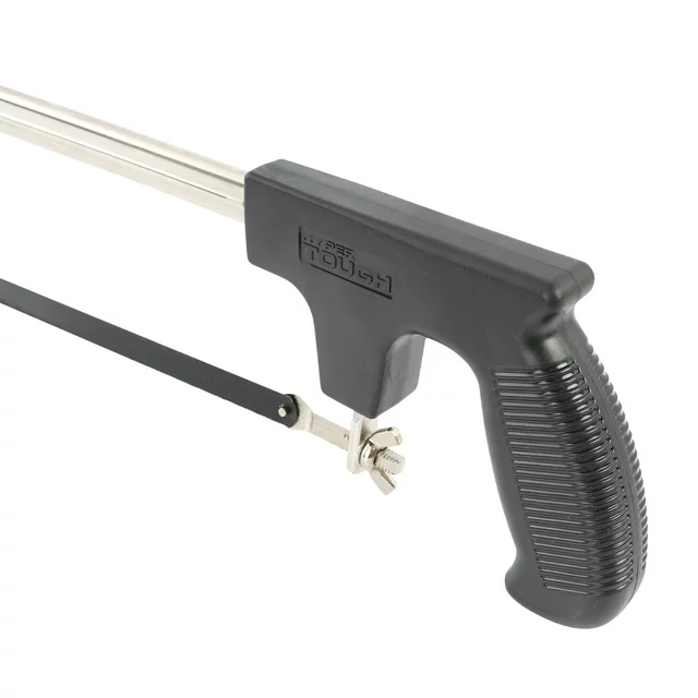 The Hyper Tough 12-Inch Adjustable Pistol Grip Hacksaw is designed for a variety of uses at home and on the job. It features a high impact pistol grip handle with optimal texture for superior comfort and control when cutting materials such as glass, ceramic tile, hardened steel or bone. It is adjustable from 10-inch to 12-inch to accept a variety of standard hacksaw blades. It includes a 12-inch x 24 tooth per inch hacksaw blade. This hacksaw is backed by a 5 year limited warranty.