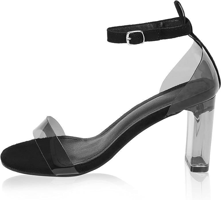 【Design】:This Clear ankle strap high heel sandals features a comfortable chunky heel, easy to walk in; adjustable clear ankle straps, the straps give enough support and they are good for long periods of time.
