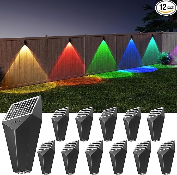 JACKYLED 2024 New Solar Fence Lights, 50 Lumens Bright Fence Lights Solar Powered Deck Lights, Outdoor Waterproof LED Fence Lights for Outside Deck Patio Railing Wall (12 Pack)