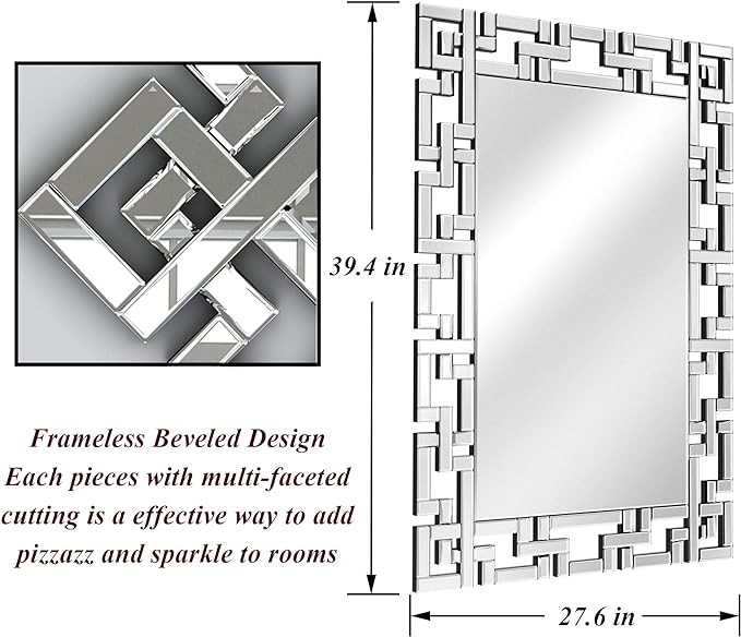 • GREEK KEY WALL MIRRORS DECORATIVE: It is a effective way to add pizzazz and sparkle to rooms. This wall-mounted mirror is suitable to hang over the mantel/ washbasin/ bedroom/ home/ hotel