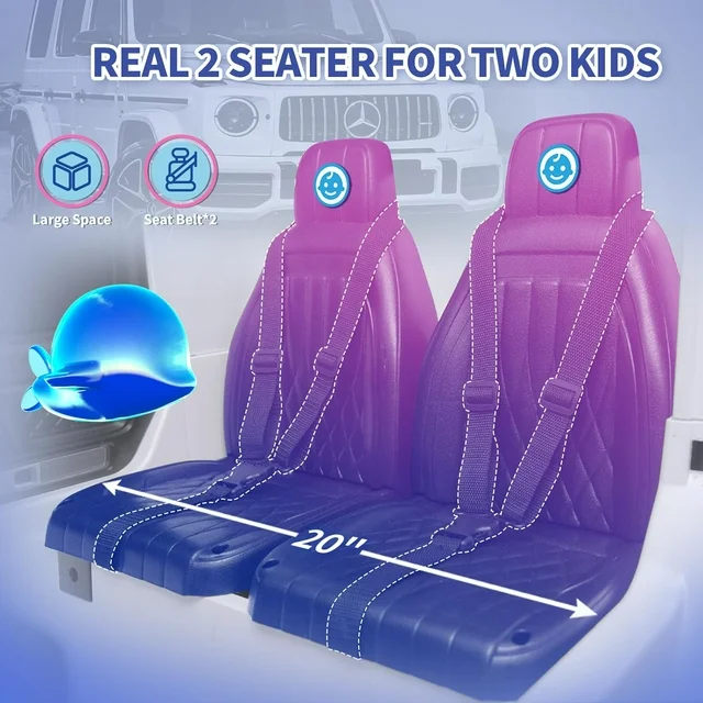 • Real 2-Seater & 24V Powerful 4WD: Joywhale 24V 2-Seater Kids Ride on Licensed G63 has almost restored the real car's appearance, the luxurious and realistic appearance can give kids an excellent driving experience. And equipped with large 2-seater & powerful 4WD power configuration, which can provide strong power on various terrains for two kids. The 20" extended seat can give kids more comfortable driving experience.