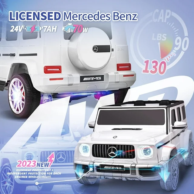 Joywhale 24V 2-Seater Kids Ride on Car Licensed Mercedes-Benz G63 Powerful 4WD for Kids Ages 3-8, with 7AH Big Battery, Remote Control, Soft Braking, 4-Wheel Suspension, LED Headlight & Music, White