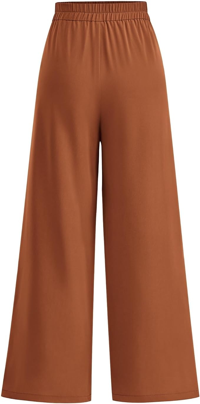 Features: Pants For Women/ Palazzo Pants for Women Dressy/ Wide Leg Pants/ Flowy Pants/ High Waisted Pants for Women/ Women Business Casual Outfits/ Summer Pants for Woman/ Back Elastic Smocked Waist/ Lightweight Drape/ Smooth Glossy Fabric/ No Stretchy and No Zipper/ Baggy Wide Legged/ Two Pleates On Front/ With Pockets.