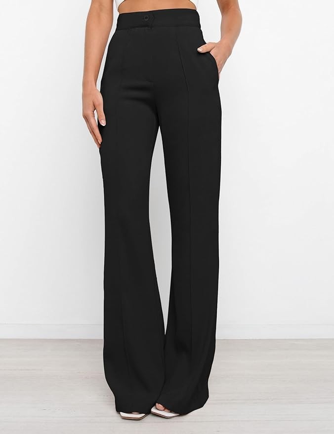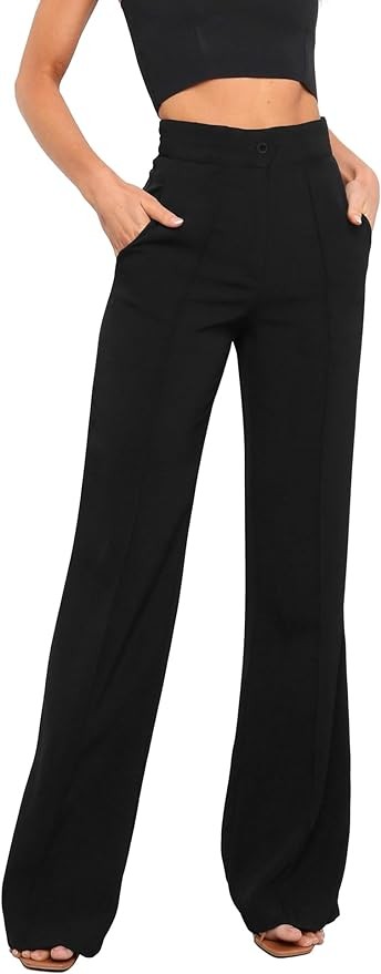 Kocowoo Women's High Waist Casual Dress Pants, Lightweight Wide Leg Long Trousers, Work Pants with Pockets for Women Office.