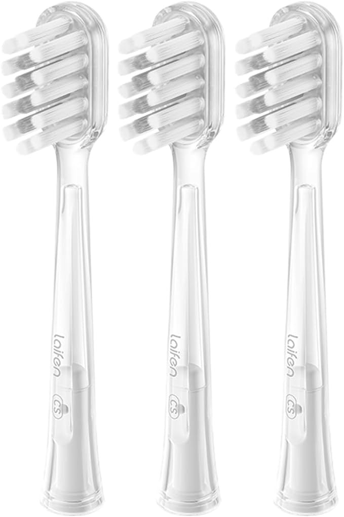 [A Fit for Every Smile] The three brush heads each suit different oral care needs. The Gum Care brush head are gentle on teeth and gums, the Super-Clean brush head reaches deep into gaps for an efficient clean, and the Ultra-Whitening brush head offers powerful cleaning to help brighten those pearly whites! What's Included: Laifen Gum Care Brush Heads (3-Pack,Transparent)