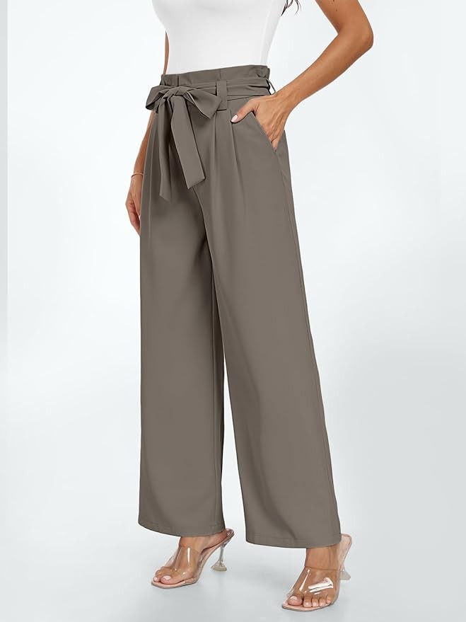 LILLUSORY Wide Leg Dress Pants Women's Paperbag High Waisted Business Casual Trousers with Removable Belt