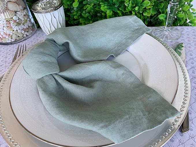• Sage green color natural stonewashed french linen cloth dinner napkins for your dining table inside and outside, these stylish napkins can dress up your table to impress friends and family both in an elegant formal table setting or in a rustic informal table setting. Great for holiday tables, lunch and dinner parties and for everyday use