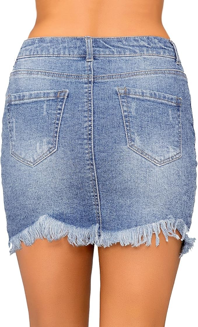 luvamia Women's Casual Mid Waisted Washed Frayed Pockets Denim Jean Short Skirt