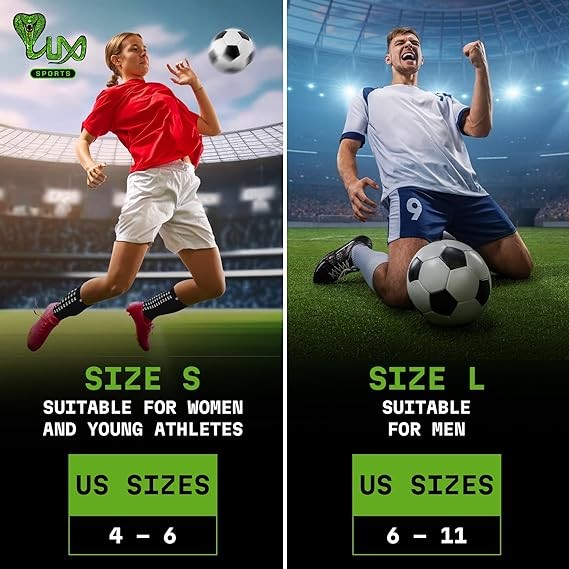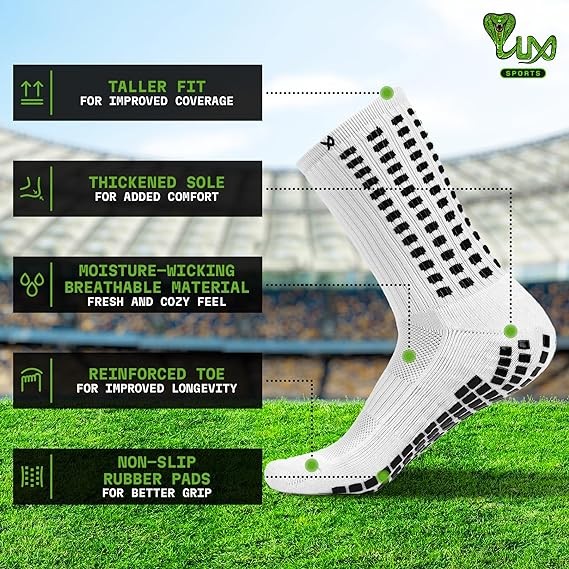 • ?Superior grip and traction: These soccer grip socks feature advanced anti-slip technology to keep you steady on your feet, no matter how intense the game gets.