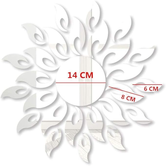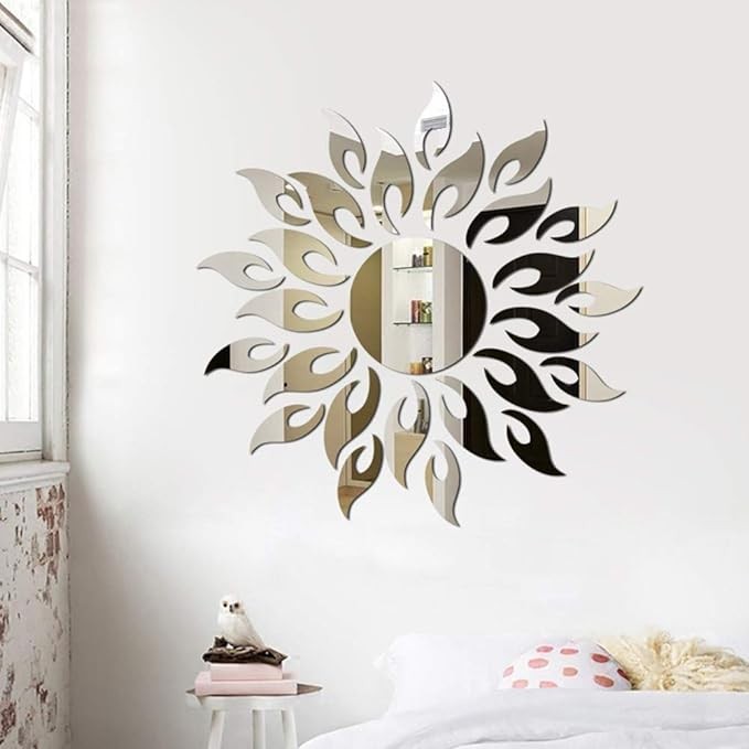 MAKLYER Sun Flower 3D Mirror Wall Stickers Sun Pattern Wall Stickers DIY Round Flower Sunflower Removable Acrylic Modern Home Decoration Art (Silver)