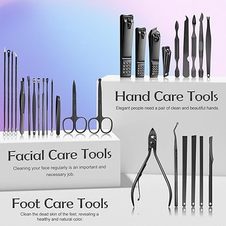 • ⭐ UPGRADED DESIGN ? Designed according to the needs of all aspects of the human body, solving manicure / pedicure / eyebrow trimming / acne / exfoliating / putting all grooming tools in one set, the black color surface shows a sense of sophistication, suitable for high-end men's crowd.