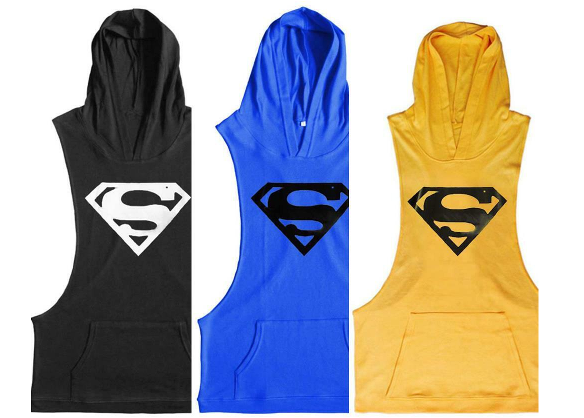 Men Workout Hooded Tank Tops Bodybuilding Muscle T Shirt Sleeveless Gym Hoodies