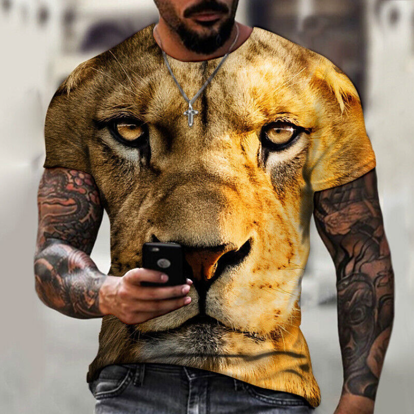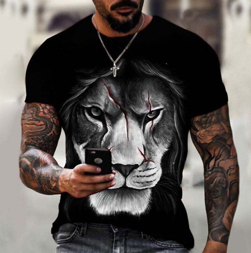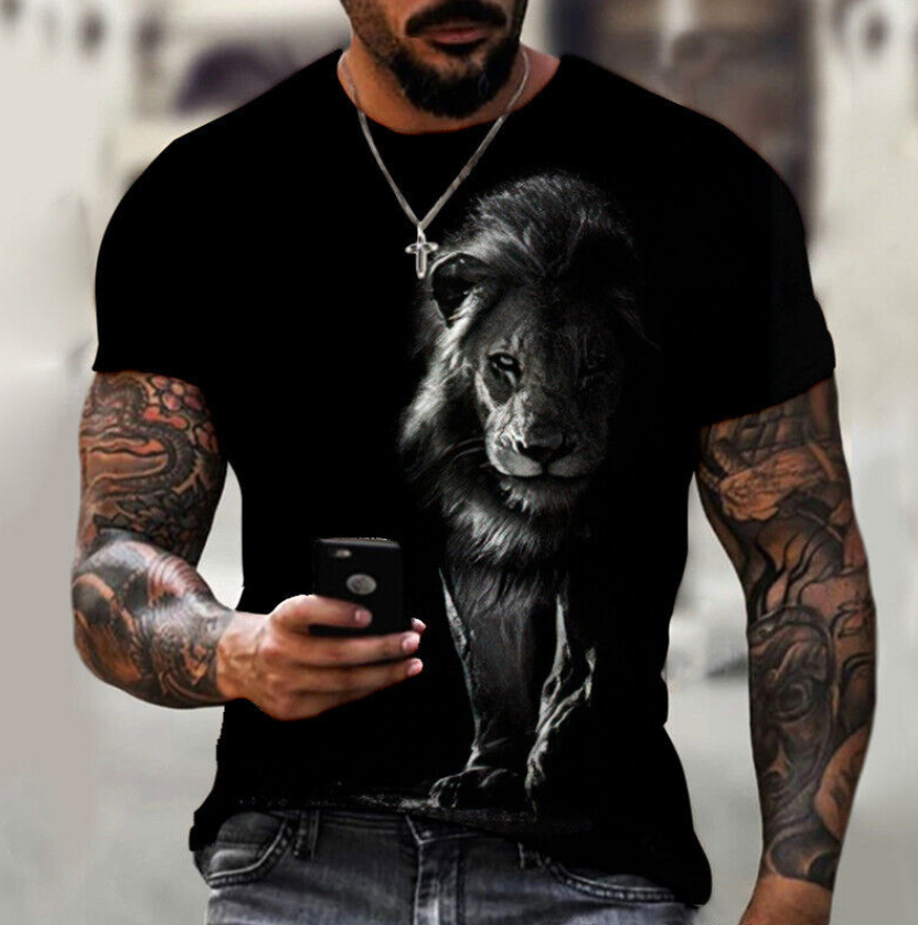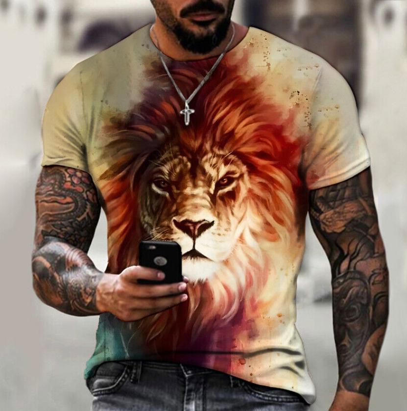 * Item:Men's Lion Print T-shirt Loose Casual Short Sleeve Thin Fit Street T Shirt Tops