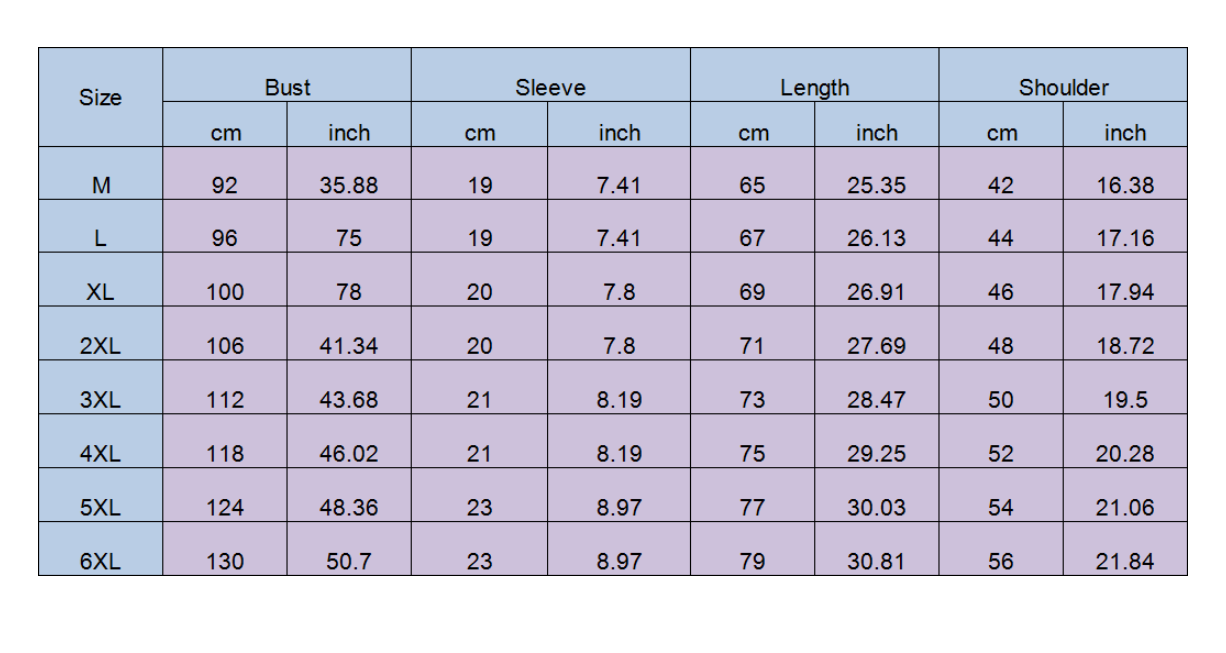 * Size:AsianM-6XL