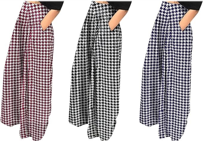 • Features: Houndstooth, High Waist, Wide Leg, Loose Fit, Front Side Pockets, Palazzo Pants, Floor Length Trousers.