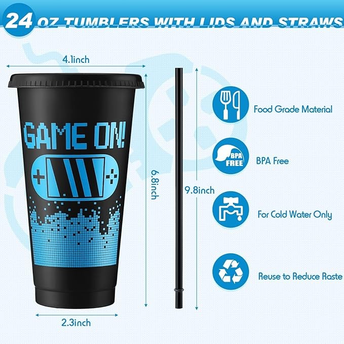 • Rich in Quantity: you will receive 24 pcs video game plastic tumblers with lids and straws in 6 different patterns, main colors are blue and black, enough quantity to meet your daily use and replace requirements, very suitable for the game theme party