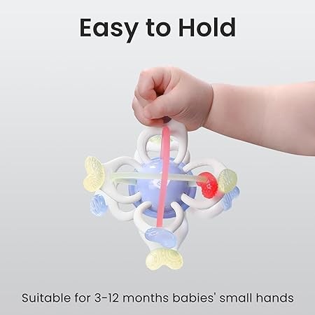 • 【EASY TO HOLD】Our silicone teether boasts multiple gripping points, allowing baby to grasp them easily. Additionally, the product's size is suitable for the small hands of babies aged 3-12 months, making it ideal for your baby to grasp and less likely to slip out of their grip.