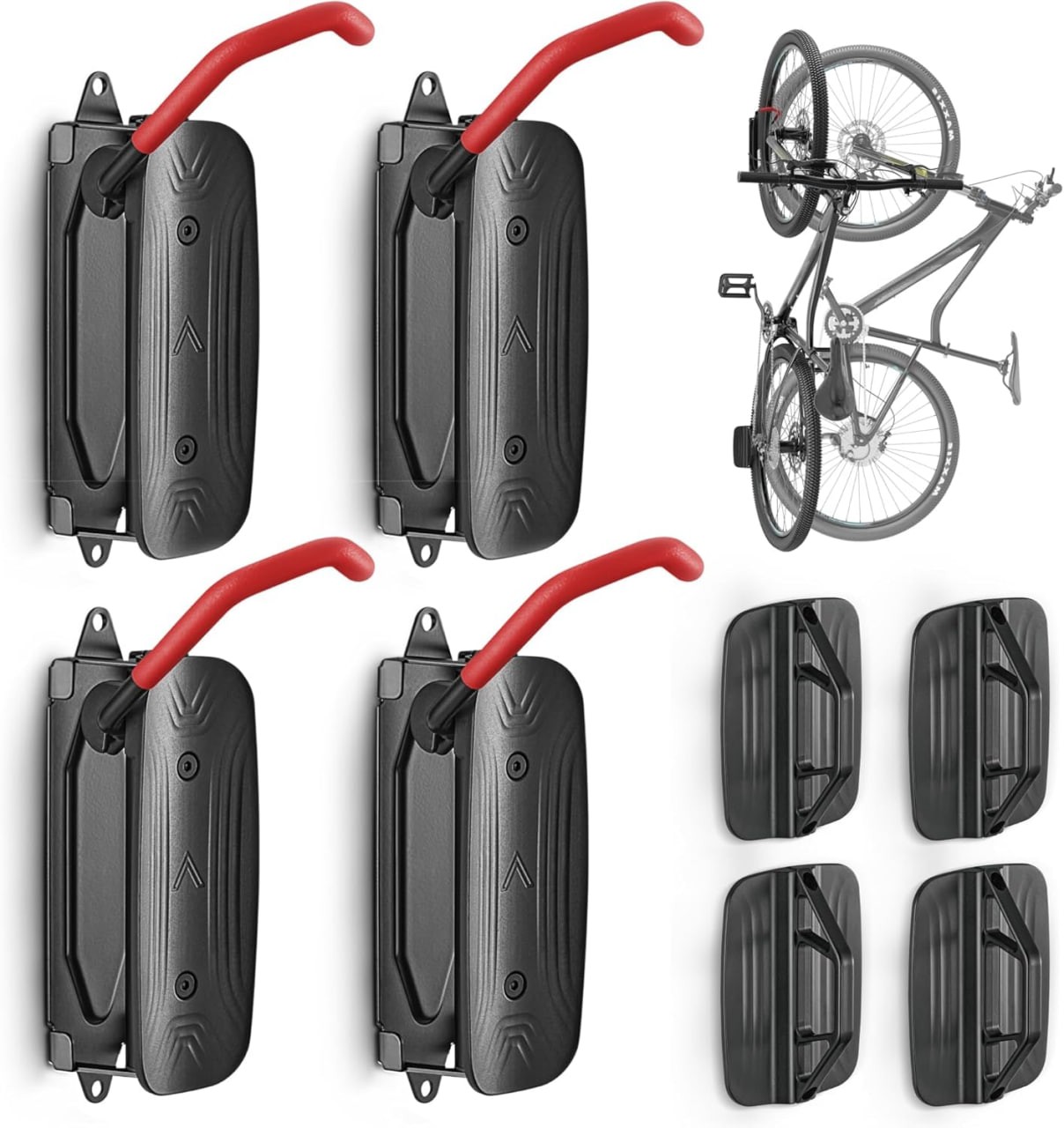 monTEK Swivel Bike Wall Mount, Bike Hangers for Garage, Wall Mount Bike Rack, Space Saving Sturdy Wall Bike Rack, Vertical Bike Rack Holds Up to 66 lbs - Bike Storage Rack for Garage, Red, 4 Pack