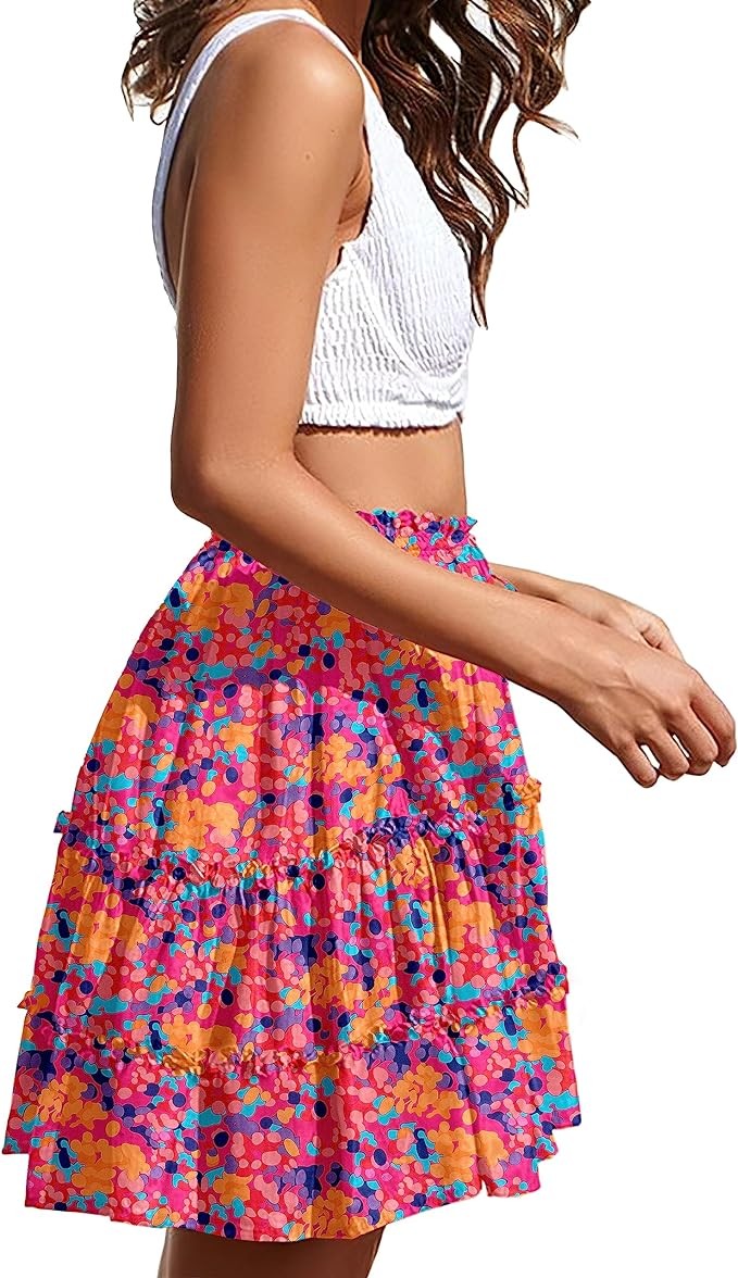 NASHALYLY Women's Summer Boho Floral Print Mini Skirt High Waist Drawstring TieFlame Rose Skirts