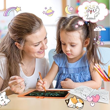 PERFECT GIFT:This LCD tablet can be used as a learning and educational toy for children aged 3, 4, 5, 6, 7, and 8. It can be used as a graffiti, writing, painting, and more. Its safety, portability, environmental protection, convenient travel, and ease of use are the best gifts for birthdays, Easter, Halloween, Christmas, and any occasions!