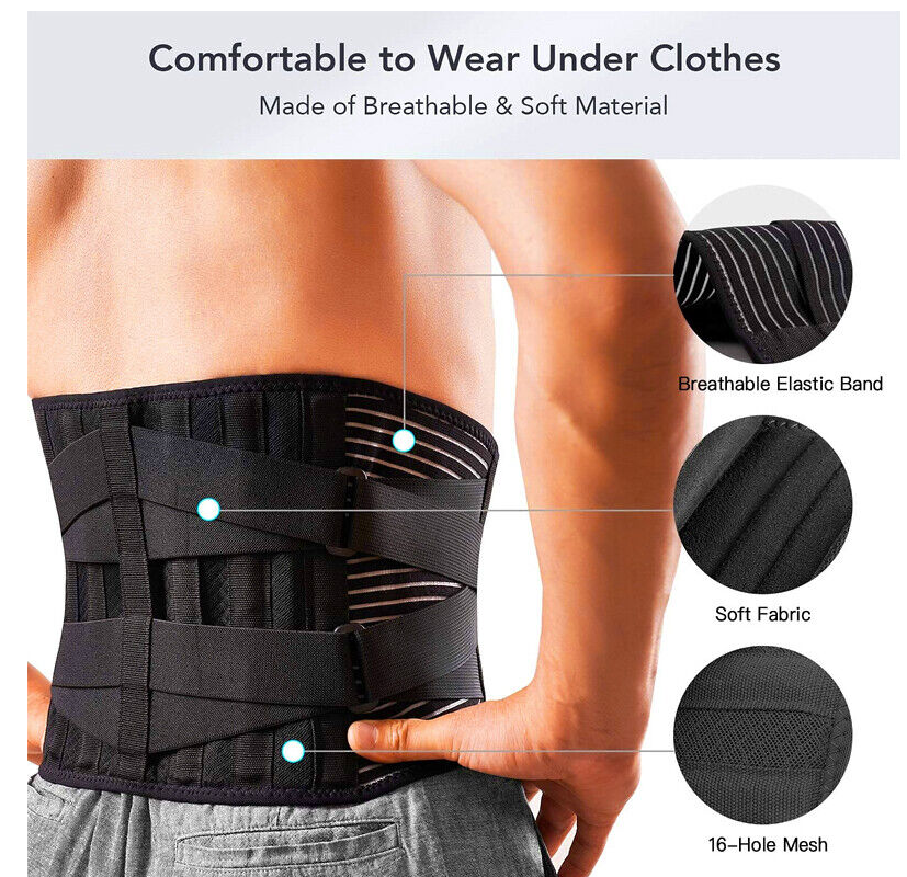 【Relieve LOWER BACK PAIN 】Freetoo Back brace contains 4 Memory-aluminum stays that are quadruple harder than the commonly used PP strips,and 2 steel springs placed along the waist side, offer 360° stronger vertical support to lower back,prevent excessive rolling of your muscles and decrease the pressure on your discs .