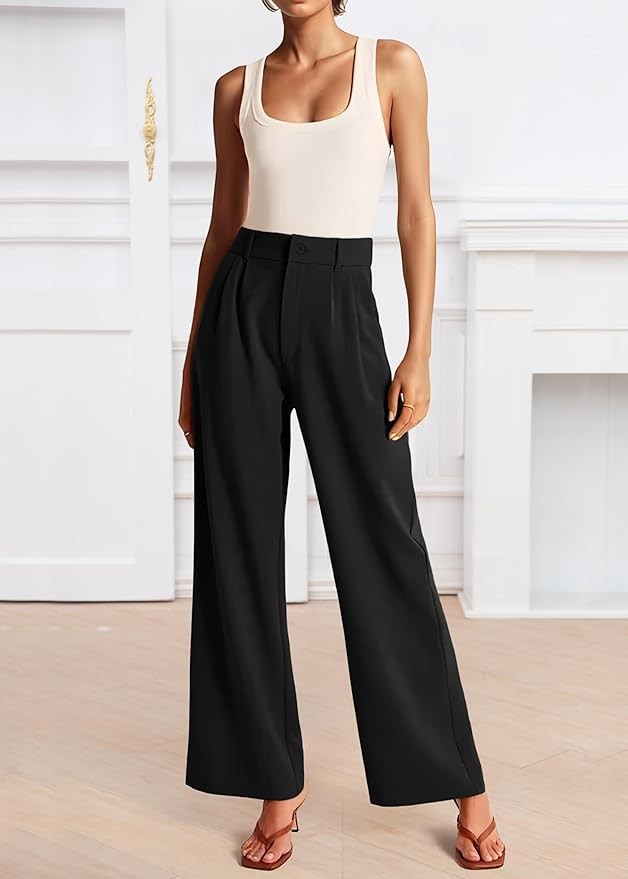 • 【Wide Leg&High Waisted】Wide Leg Dress Pants, High Waisted Dress Pants, Pleated, Elasticband, Button and Zipper in Front, Women Business Casual Work Pants Loose Fit, Casual Summer, Palazzo Pants with Pockets,Straight Leg Slacks for Women,Long Lounge Pants.