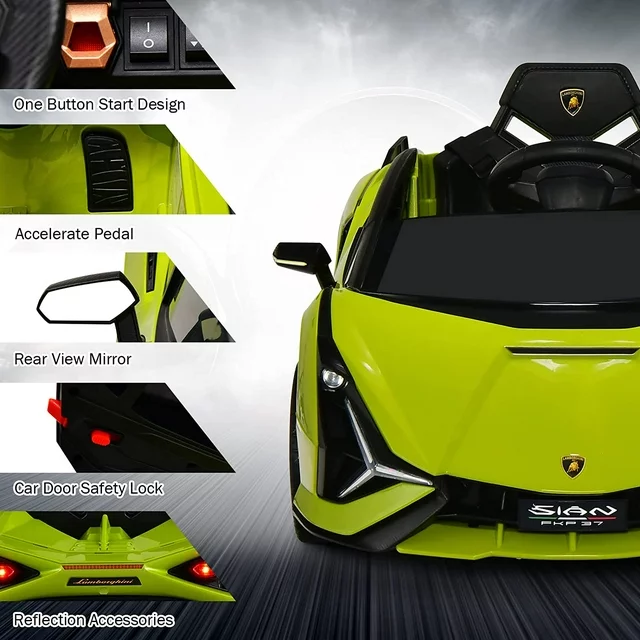 • ?LICENSED BY LAMBORGHINI: Italian Lamborghini licensed ride on car, scaled down according to Lamborghini real car. From Lamborghini’s design concept, details determine quality. High appearance level ride on toy car with full functions. Adopts the mechanical arm of automobile manufacturing industry to spray evenly, so that the bright paint surface does not fade.