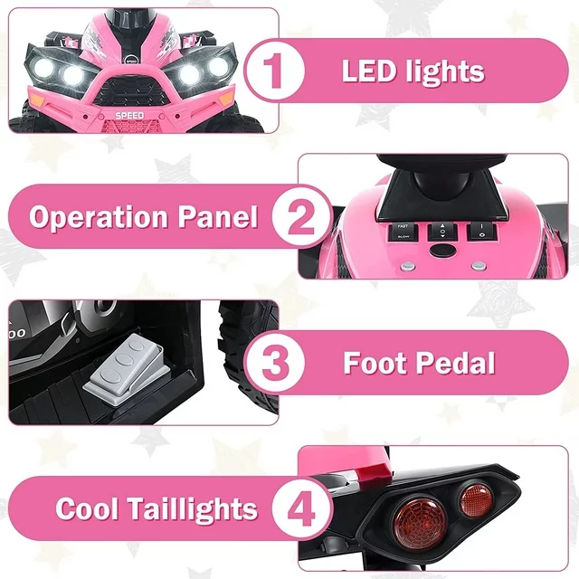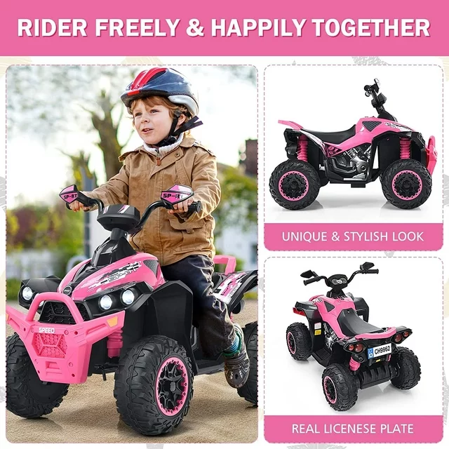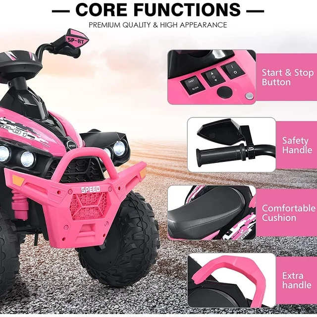 SLOW START IS SAFER: The ATV 12V seat has a one-button start function which includes high and low speed. Kids can start at a slow speed when starting a super simple operation, so that children drive more safely. In addition, four large diameter wheels increase the stability of the ATV.