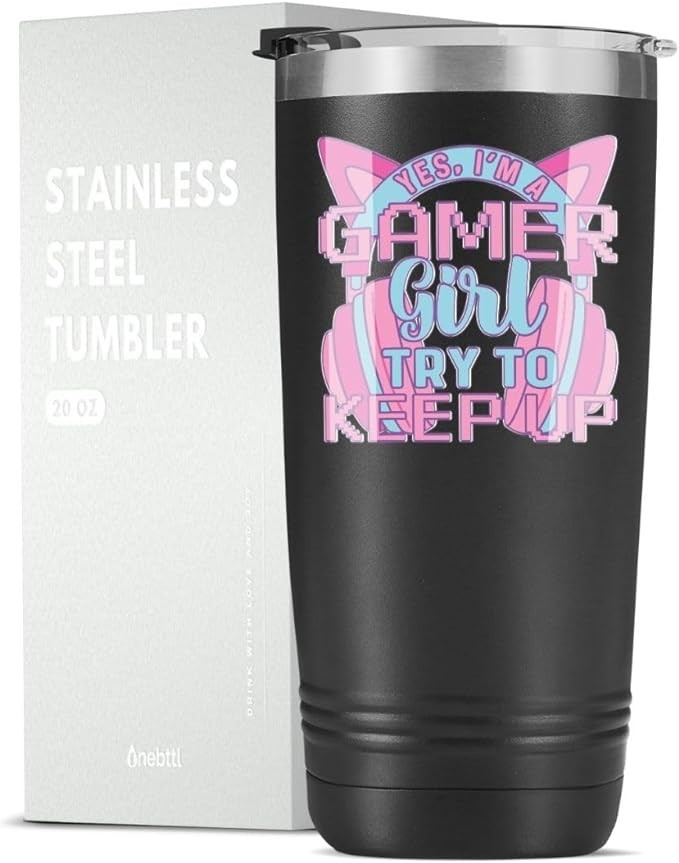 Onebttl Gamer Gifts for Girl, Gaming Mug 20oz Stainless Steel Tumbler, Yes I'm A Gamer Girl Try To Keep Up