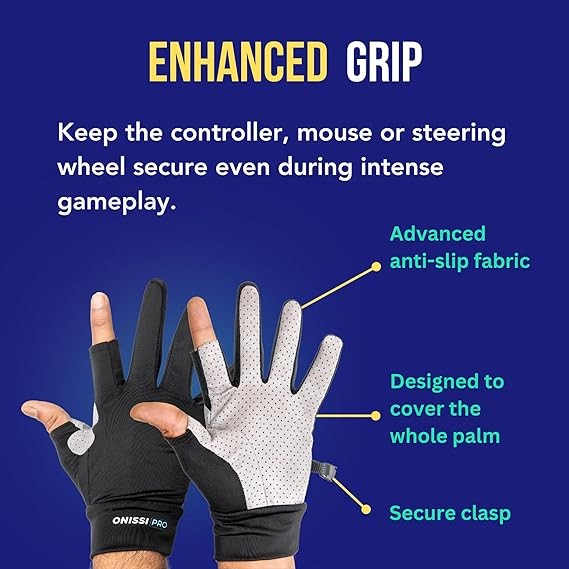 ONISSI Pro Gaming Gloves for Sweaty Hands | Sim Racing Gloves | Gamer Gloves for Grip PS4/ PS5/Xbox/PC/VR/Mobile/Sim Racer